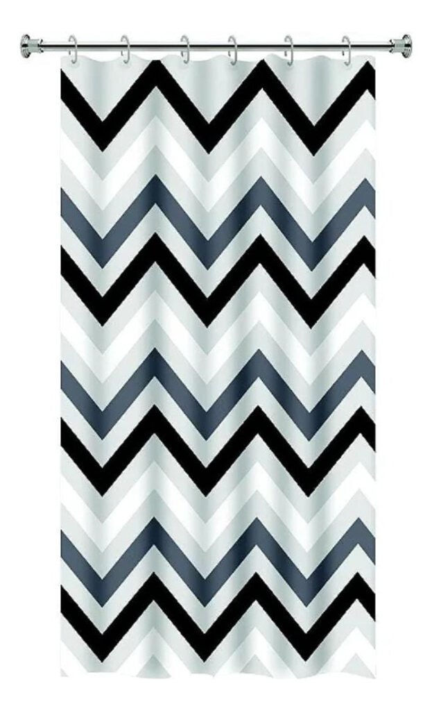 Cortina Box Banheiro Zig Zag Preto Branco Gancho 198x138cm