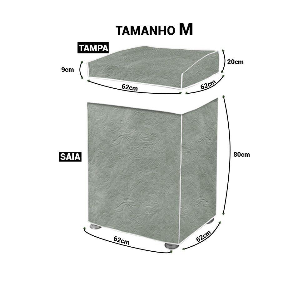 -Tampa: 0,62m (Largura) x 0,09m (A frente) x 0,20m (A trás) x 0,62m (Profundidade).