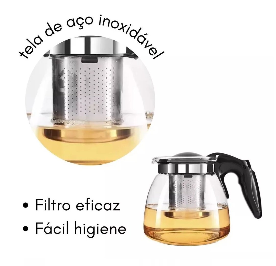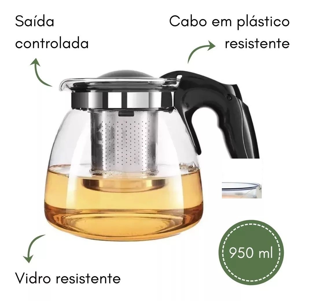 -01 Chaleira Bule de Vidro com Infusor Chá Café Inox – 950ml