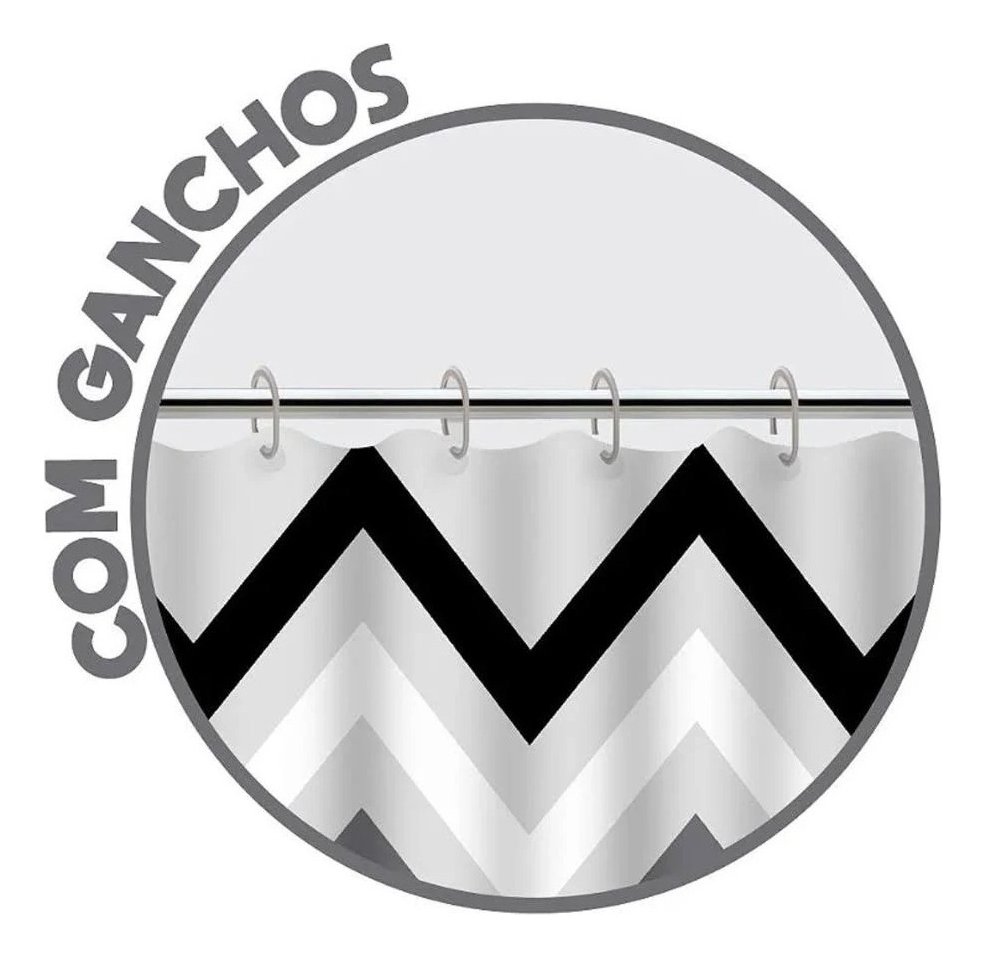 Cortina de Box Zig Zag Preto e Branco – Impermeável com Ilhós Reforçado