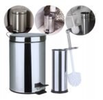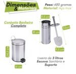 Kit Lixeira de Aço Inox 3 Litros Escova Sanitária e Suporte