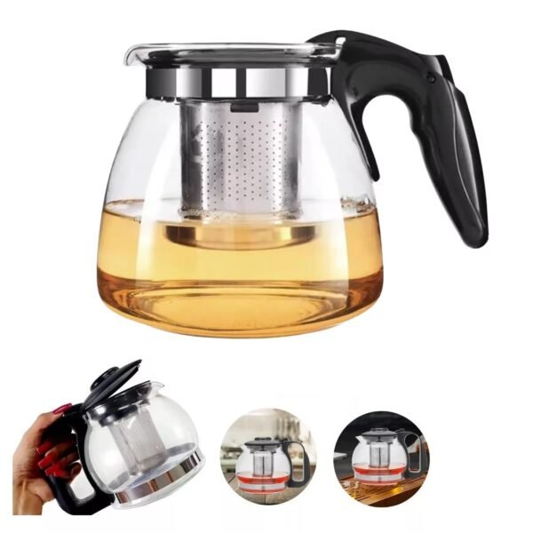 • Chaleira Bule de Vidro Com Infusor Chá Café Inox 950ml R$49,90